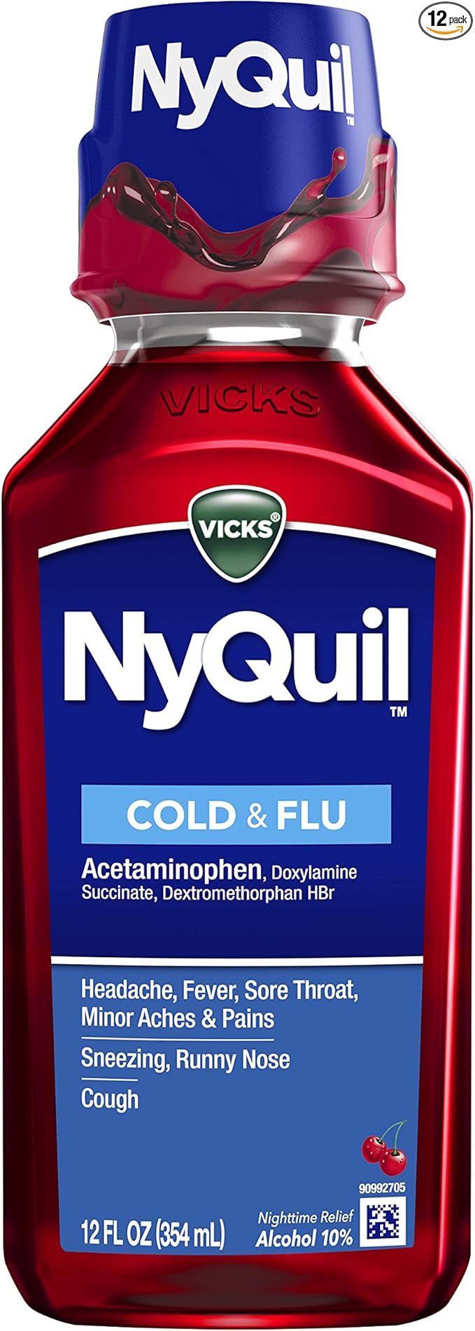 Amazon Com Vicks Nyquil Cough Nighttime Relief 12 Fl Oz Cherry Flavor Relieves Sore Throat Runny Nose Cough Health Personal Care